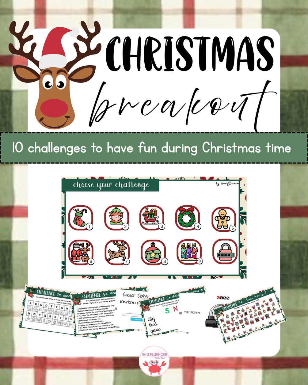 10 challenges para trabajar el tema de Christmas en el aula. Los alumnos tendrán que resolver un reto final para poder abrir el candado.